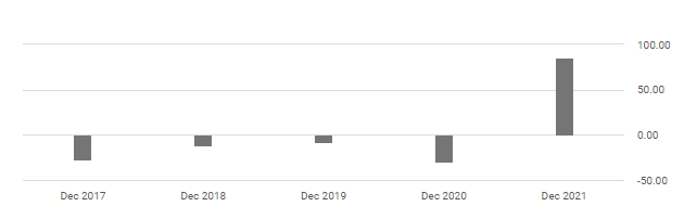 매출과 당기순이익은 일정하진 않지만 성장하는 경향이 있다. 당기순이익의 상승으로 인해서 주당배당금이 증가하지만 배당성향은 더욱 안정적인 모습을 보인다. 잉여현금흐름 역시 마이너스에서 플러스로 변한 모습을 보이고 있다.