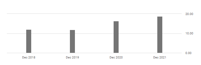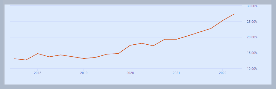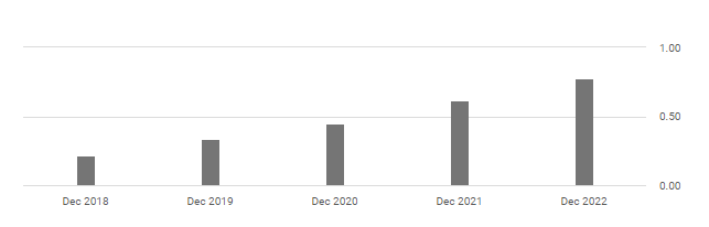 2022년에 20%대로 하락하기는 했지만 높은 성장성을 유지하고 있습니다. 올해도 분기마다 0.1달러씩 증액한다면 21%의 배당성장률을 보일 것으로 예상됩니다.